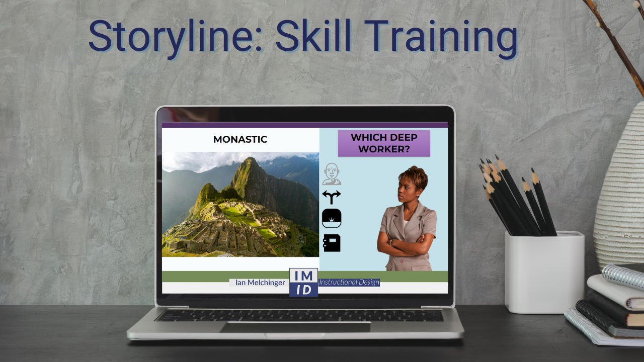Solution: Creating “Brenda,” a friendly worker who’s better at Deep Work than the learner, allows them to learn from her examples. Some drag & drop sorting helps the learner differentiate shallow and deep tasks.